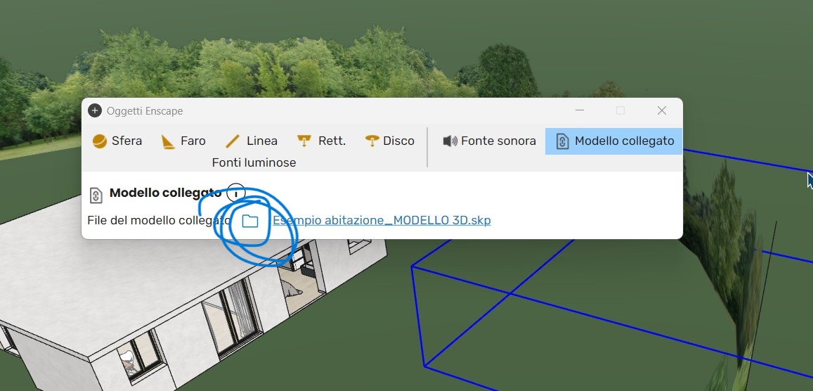 Creo il mio progetto in SketchUp utilizzando i modelli collegati. Se però apro lo stesso file sull’altro computer (quello su cui non è stato creato il disegno originale), SketchUp mi mostra correttamente la sagoma del modello collegato, mentre in Enscape non vedo nulla.